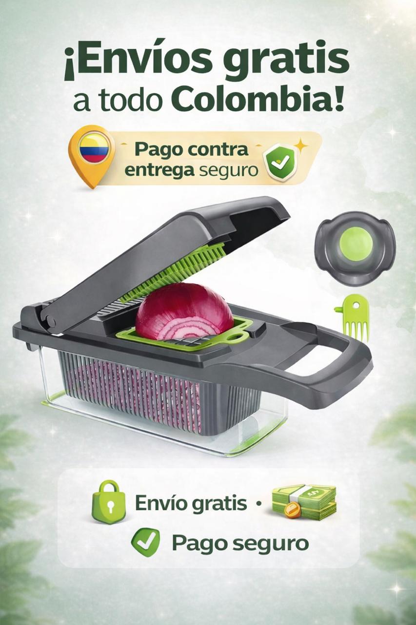 CORTADOR DE VERDADURAS MULTIFUNCIONAL -AYUDANTE DE COCINA EN ACERO INOXIDABLE DE ALTA RESISTENCIA @@Tu ayudante de cocina ideal, por el cual ya no tendrás inconvenientes al momento de cocinar, el conjunto de cuchillas multifuncionales en acero inoxidable tiene todo lo necesario para cortar, rebanar , rallar , y rebanar! Picar las cebollas, calabacines, pimientos, apio, tomates, huevos duros, queso, frutas y luego ver como la transferencia de ingredientes pasa instantáneamente a la superficie de corte al recipiente de abajo. ¡No hay problemas, y sin descubrir! más agradable con el Plus ya no es un problema ya que tiene todo en un sistema práctico! Sencillo y ahorro de espacio como se pone. @@Cortador de verduras, 15 en 1, @cortador @multifuncional de @mandolina cortador y rallador de alimentos cortador de verduras